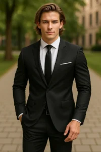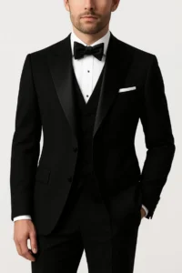 Custom Black Suit: Slim Tailored Fit, Wedding Tuxedo groom outfit