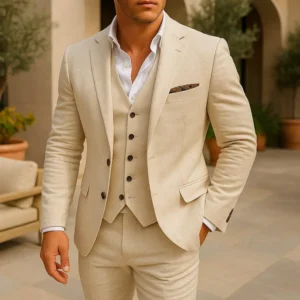 Cream 3 Piece Menβs Suit β Slim Fit Wedding Suit | Custom Tailored Groom Outfit | Handmade Luxury Formal Wear