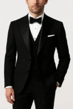 Step into timeless elegance with our Black Custom made 2 Piece Men’s Suit, a wardrobe essential for the modern gentleman. Designed with a slim tailored fit, this versatile suit includes a sleek blazer and matching trousers, offering a polished and sophisticated look for any occasion.