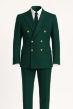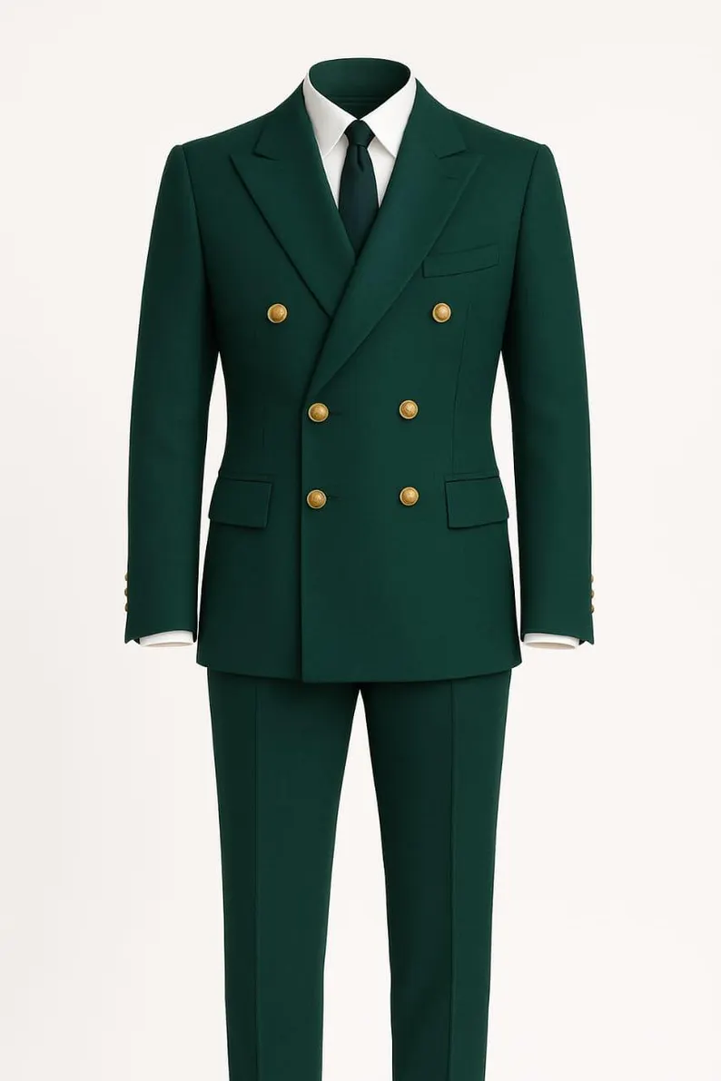 Turn heads in this Emerald Green 2-Piece Premium Suit for Men, designed for those who appreciate bold elegance. This stylish ensemble features a 6-button double-breasted jacket and matching slim-fit trousers, making it perfect for weddings, proms, formal events, or standout occasions.