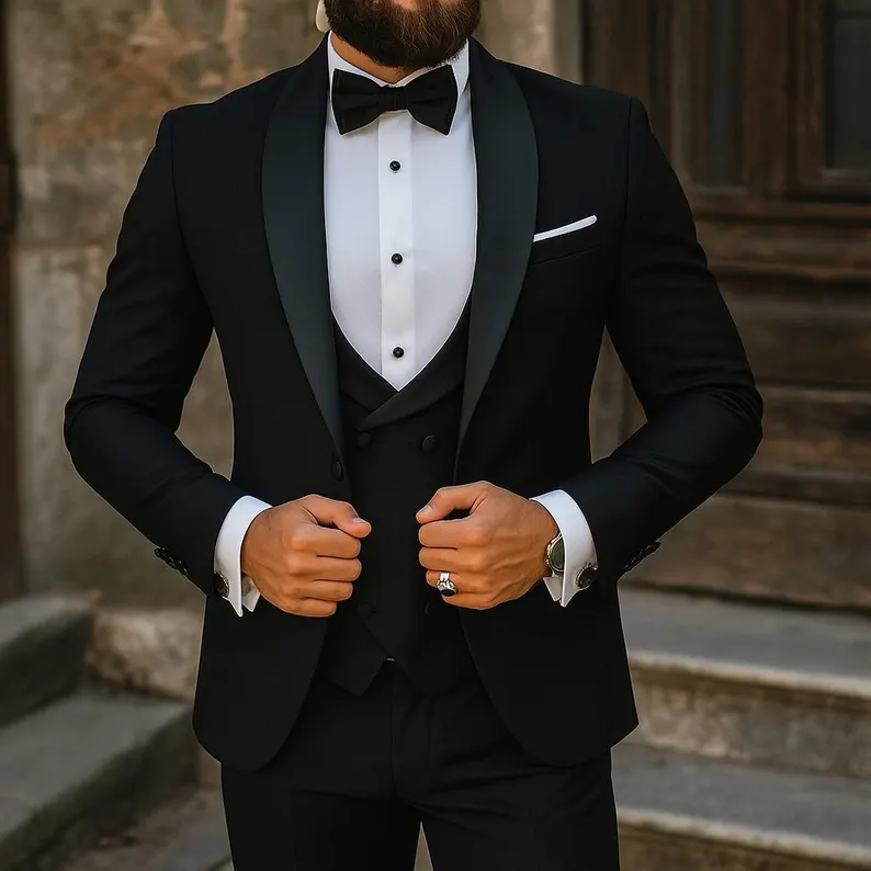 Make an unforgettable impression with this Men’s Premium Black 3-Piece Shawl Lapel Tuxedo Suit – a sophisticated ensemble designed for the modern gentleman. Perfect for weddings, formal events, proms, or black-tie occasions, this timeless tuxedo radiates elegance and confidence.