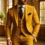Stand out this season with our Men’s Mustard Yellow Custom Made 3-Piece Suit, the perfect statement ensemble for summer weddings, receptions, and festive events. Designed for those who dare to be bold, this vibrant yet classy suit adds a lively twist to traditional formalwear.