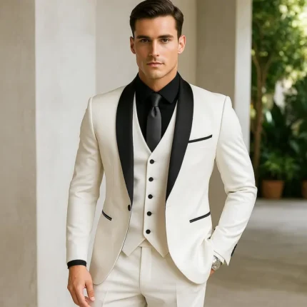 Custom Made 3 Piece Off-White Three-Piece Suit: Tailored Wedding Groom Tuxedo, Formal & Wedding Attire, Stylish suits for men, Gift for men