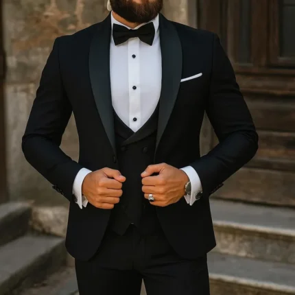 Custom made 3-Piece Men’s Premium Black Shawl Lapel Tuxedo Suit – Formal Wedding, Prom & Event Wear – Groom Suit, Gift for men
