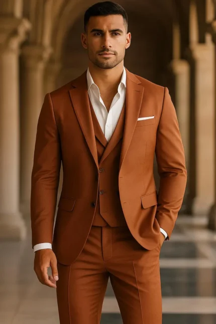 Custom Made 3-Piece Terracotta Suit – Bespoke Slim Fit Wedding Suit | Groom, Groomsmen & Party Wear, Stylish suits for men, gift for men